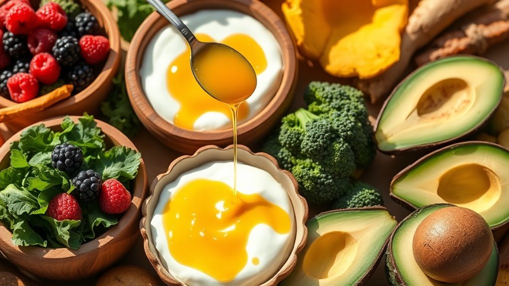 To heal your body from within, focus on anti-inflammatory foods that reduce chronic inflammation. Include nutrient-packed fruits like berries and citrus, along with leafy greens and cruciferous vegetables. Whole grains such as quinoa and brown rice can improve your digestive health, while healthy fats from avocados and fatty fish support brain wellness. By incorporating these foods, you’ll nourish your body and manage inflammation. Discover other healing elements, including spices and herbs, that can further enhance your well-being.