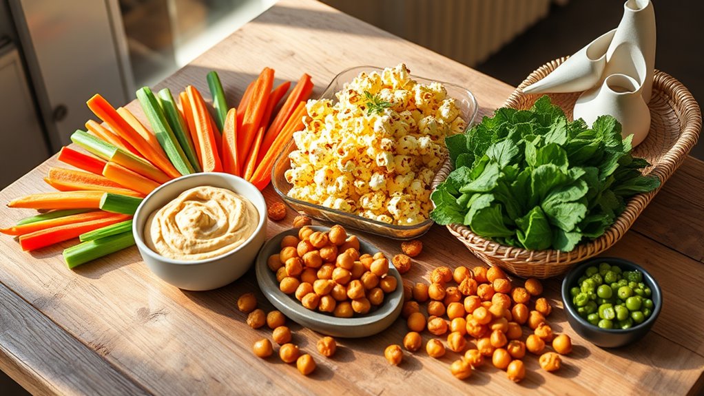 If you’re looking for clean eating snacks that are better than chips, you’ve got plenty of tasty options! Try air-popped popcorn tossed with nutritional yeast for a cheesy flavor, or munch on crunchy veggie sticks with hummus. Baked sweet potato fries and roasted chickpeas satisfy cravings without the guilt. Sweet treats like almond butter energy bites and fruit-nut trail mix pack a nutritional punch. Plus, rice cakes with avocado and edamame with sea salt offer satisfying, protein-packed alternatives. You’ll find even more delightful options ahead!