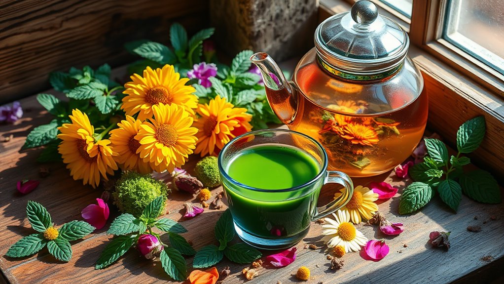 If you’re looking to ditch coffee for energizing herbal tea, you’re in for a treat! Herbal teas like ginseng and yerba mate boost your energy without the jitters. Peppermint tea refreshes your senses, while hibiscus adds a floral twist. Plus, they’re packed with antioxidants and support digestion. Transitioning is easy when you establish a soothing tea ritual. Stick around to explore flavor profiles and tips for brewing your perfect cup!