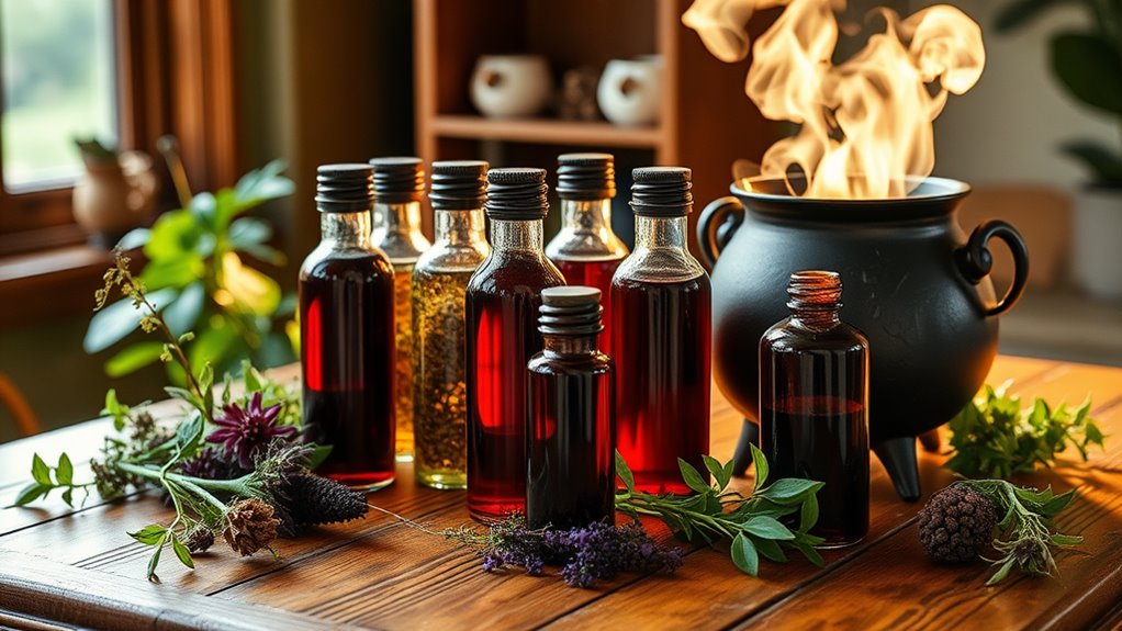 DIY tinctures can be a powerful way to support hormonal balance. Incorporate herbs like Ashwagandha to reduce stress, Vitex to ease menstrual discomfort, and Maca to stabilize mood. You’ll need high-proof alcohol, glass jars, and a cool, dark place for steeping. Just combine the herbs with alcohol, let them infuse for several weeks, and then enjoy daily. If you’re curious about recipes and tips for creating your own, continue to discover more ways to enhance your wellness.