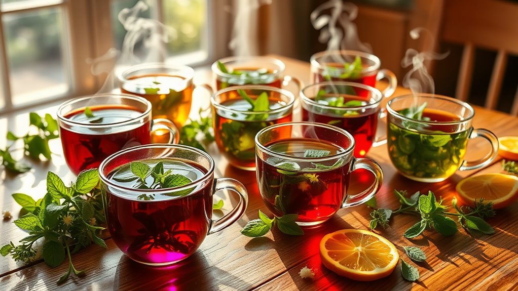 While exploring flavor combinations, you’ll discover that pairing different herbs and spices can elevate your herbal tea experience significantly.
