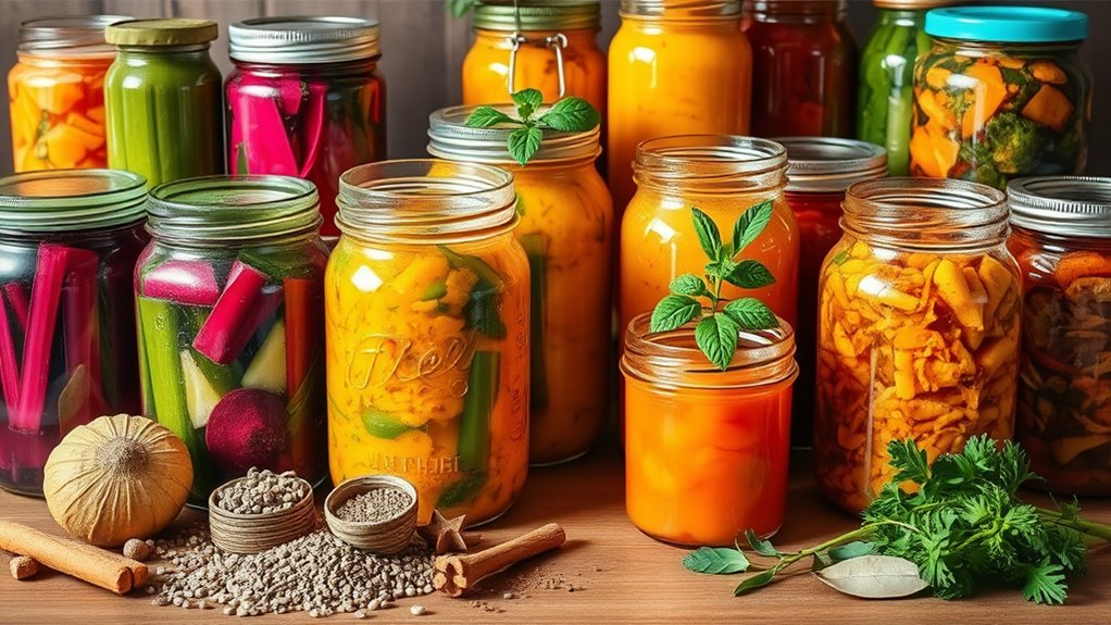 Fermented recipes are fantastic for boosting your gut health instantly! Try homemade sauerkraut or gut-friendly kimchi for a probiotic punch. You can whip up creamy kefir smoothies or refreshing kombucha to keep your digestion on point. Fermented pickles make a crunchy snack, while comforting miso soup offers warmth and nutrition. For a fiery kick, don’t forget about flavorful fermented hot sauces. If you’re curious about more delicious options and easy recipes, keep exploring!