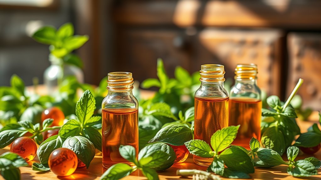 Herbal extracts are like liquid gold for your health, offering a variety of benefits. Turmeric extract fights inflammation, while ashwagandha helps manage stress. Ginger root soothes digestion, and elderberry boosts your immune system. If you’re looking for energy, ginseng is your go-to, and garlic extract supports heart health. Rhodiola rosea acts as a powerful adaptogen, while cinnamon regulates blood sugar. Explore these herbal wonders to unlock their full potential for your well-being. There’s so much more to discover!