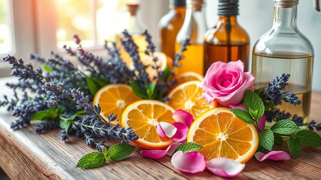 When crafting your room spray, selecting the right essential oils sets the mood and enhances your space. You’ll want to consider natural base ingredients that not only support the oils but also promote a fresh environment. Plus, optional additives like vanilla or citrus can elevate your blend, giving it a unique touch that captivates the senses. To enhance scent longevity, incorporating natural ingredients can make your DIY freshener more effective in keeping your space smelling great.