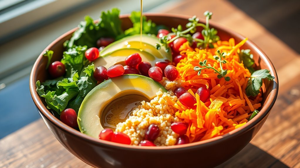Incorporating these powerhouse ingredients into your diet helps you feel full longer and nourishes your body with essential vitamins and minerals, promoting vitality and wellness. Additionally, a nourishing superfood bowl can be a creative way to combine these ingredients for maximum health benefits.